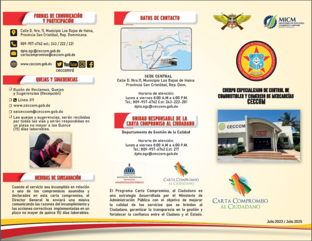 CECCOM obtiene la 2da. Versión de la Carta Compromiso al Ciudadano, por cumplir satisfactoriamente con los requisitos establecidos por el Ministerio de la Administración Pública (MAP)., la cual fue aprobada mediante la Resolución No.229-2023.